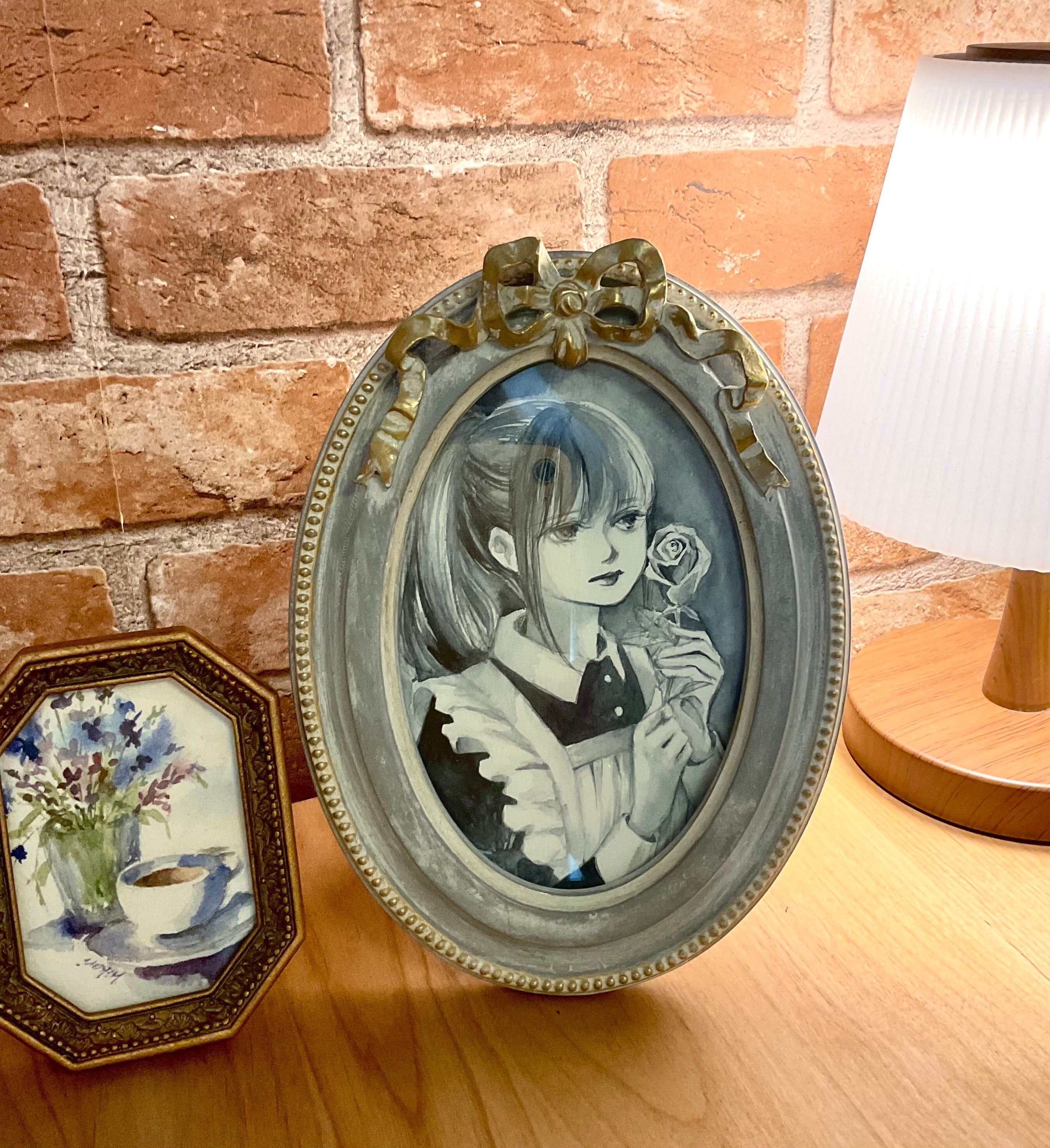 縦20㎝×横10㎝の丸型、ハガキサイズほどの額です。