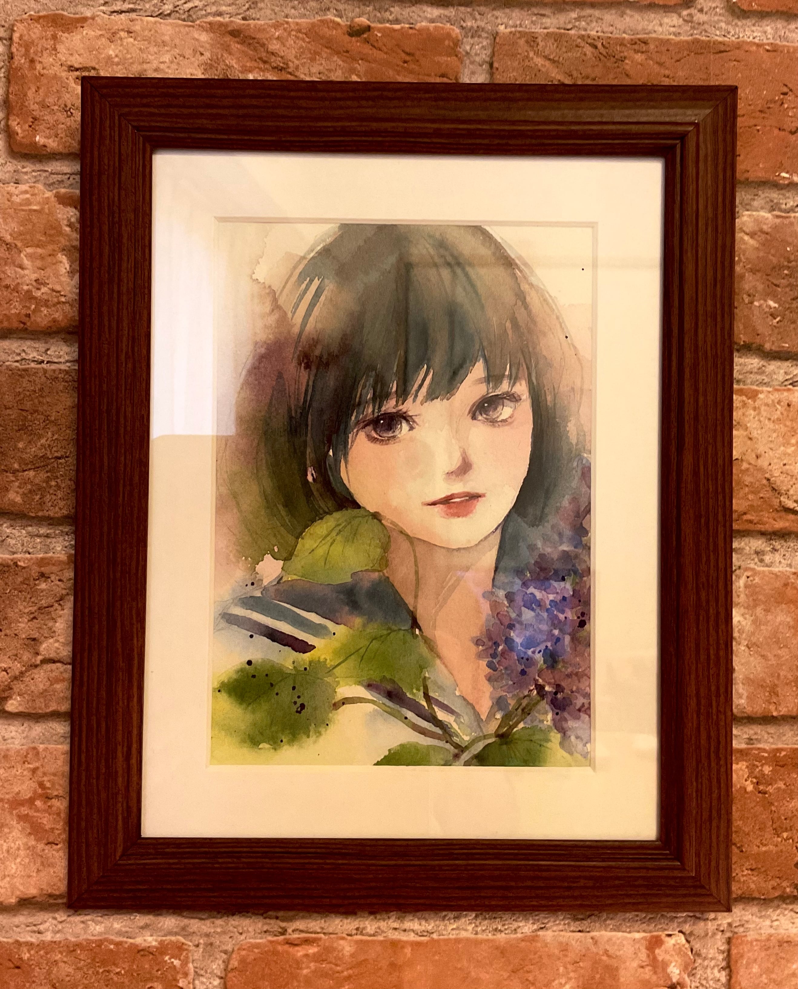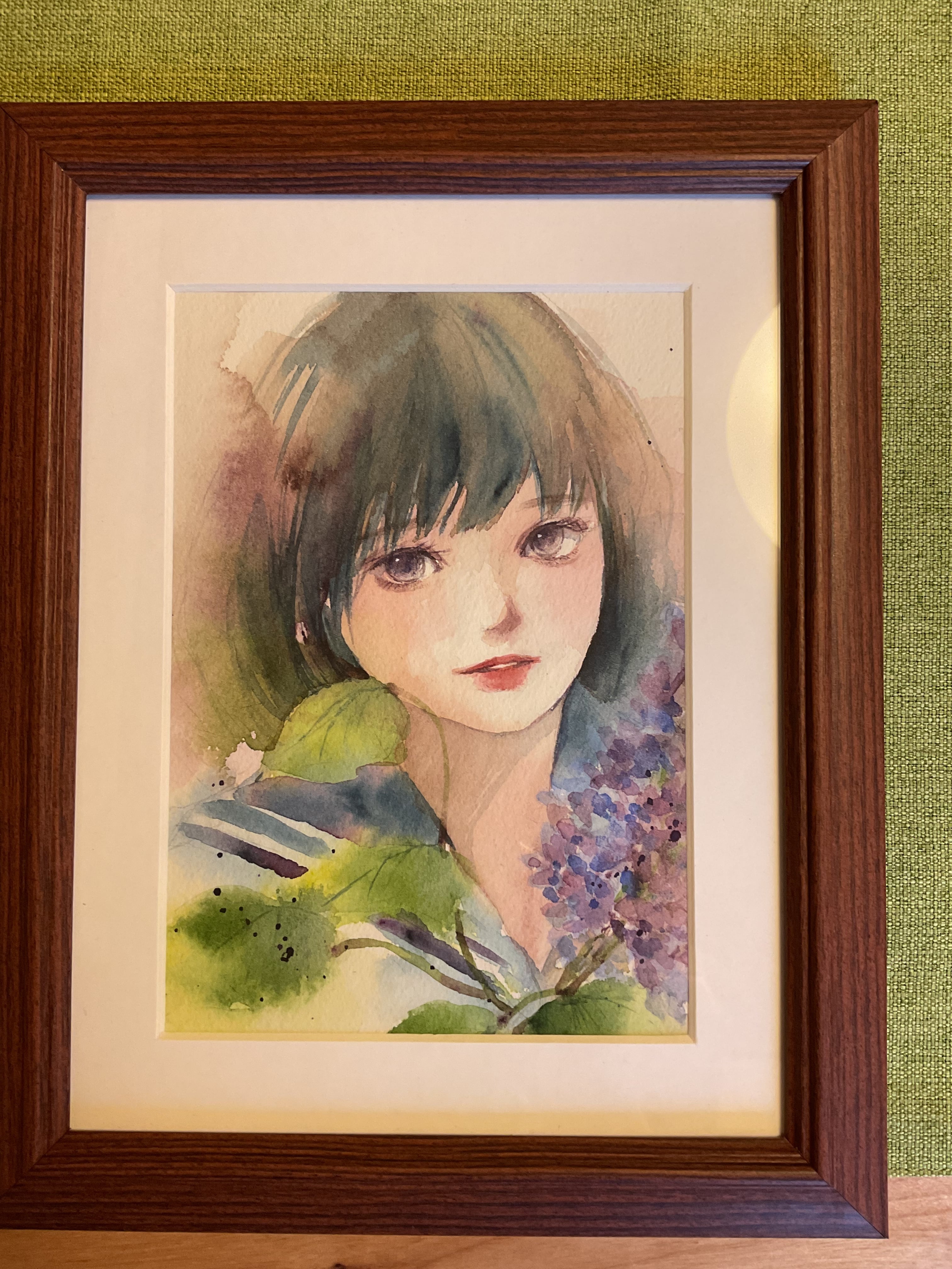いつもご覧いただきありがとうございます。 女の子とライラックの額入りポートレートです。 絵の部分は2Lサイズです。 壁掛け、立て掛けできます。 ネコポスで発送致します。