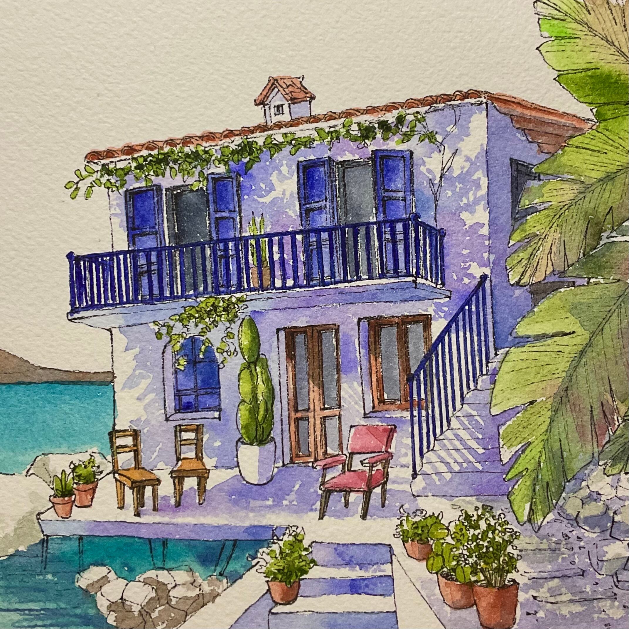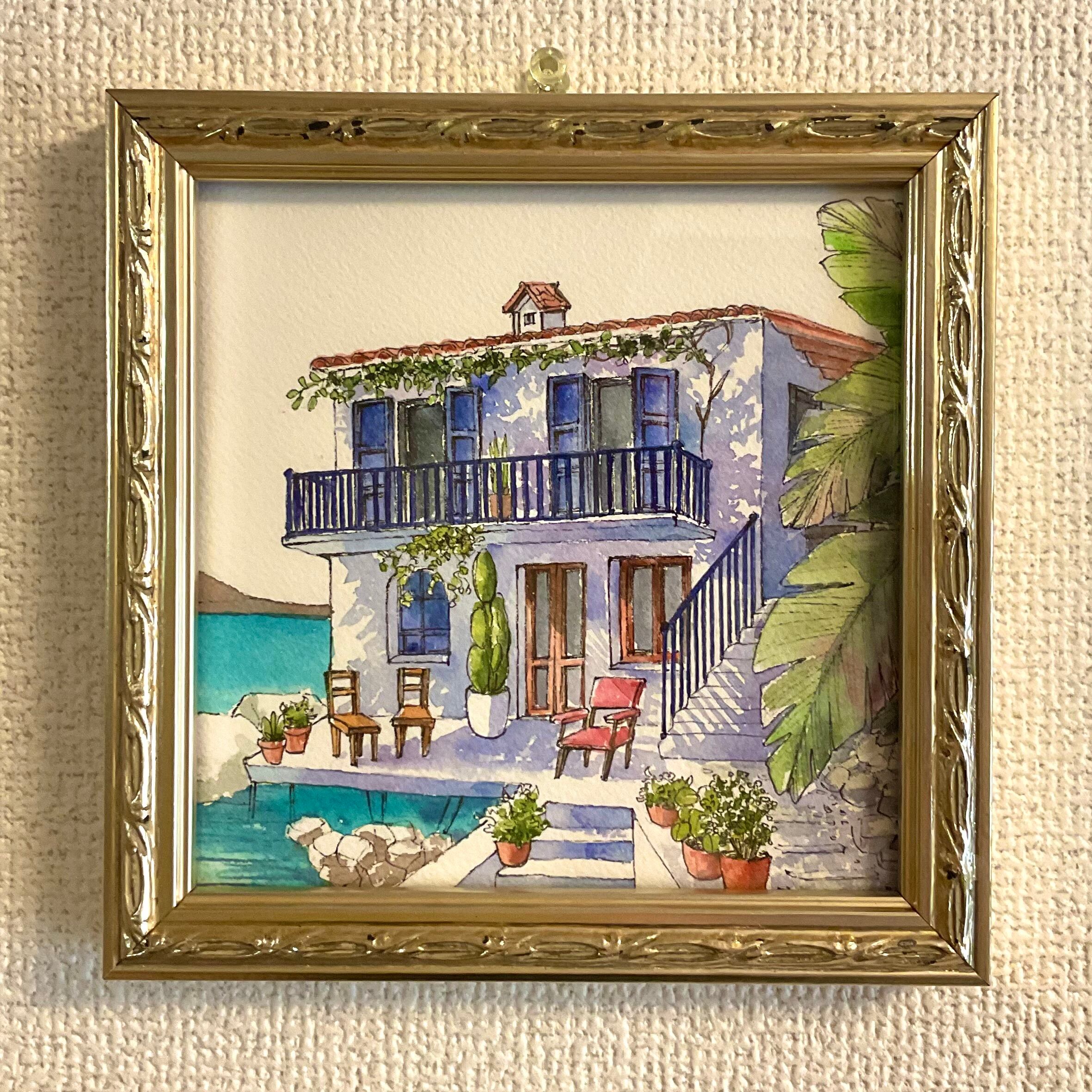 憧れの地中海?リゾートを描きました。
